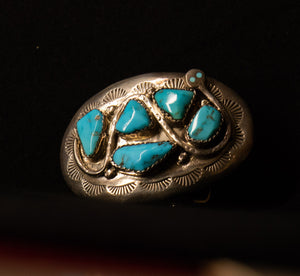 Zuni belt buckle by Effie C. Turquoise and sterling silver.